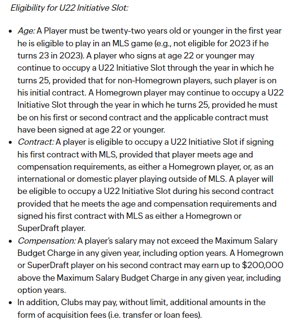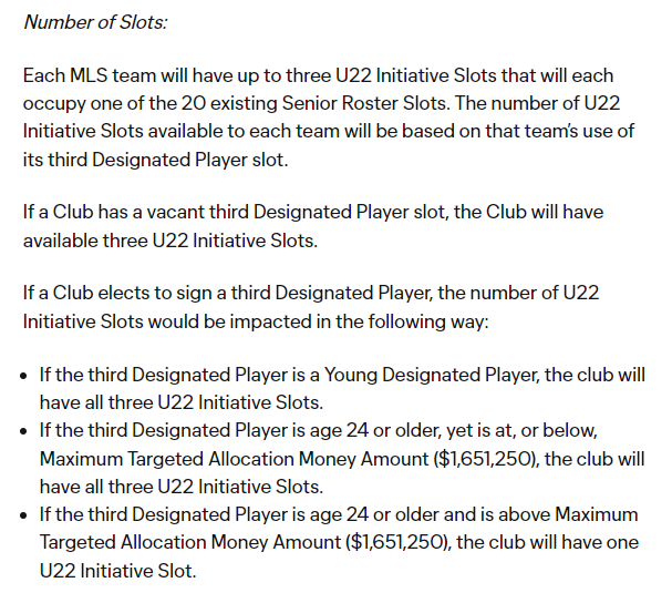 In order for the Timbers’ roster to be compliant in 2024, one of their four U22 Initiative players (Moreno, Mosquera, David Ayala, and Antony) has to come off the tag before the roster compliance date (Friday, February 23). This wasn’t an issue last season because David Ayala was put on the Season-Ending Injury (SEI) tag following his unfortunate ACL tear. Antony was able to be added as a U22 because the Timbers technically only had 2 U22 players on the active roster. This was an underrated storyline to the offseason, and I was very interested to see how they would handle it. Each U22 Initiative player must occupy the slot for 2 years. Santiago Moreno has done that for two years, so he’s going to come off that tag for this season because he signed his second contract. Mosquera’s situation is more interesting. He hasn’t reached the two seasons necessary to get out of the tag, but his tag will expire in August. This means that the Timbers will have an open U22 slot late in the season. Where it gets more interesting is next offseason. Ayala will come off the tag next offseason, which would leave Portland with one U22 Initiative player on the roster. How does that affect this season? Well, you see, there’s an interesting (stupid) rule about how U22s affect the Designated Players you can sign.