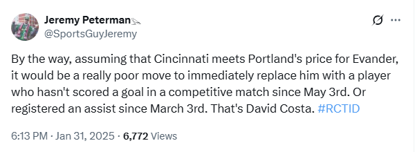 This could be an A, or even an A+ given that many of the new players have boosted the Timbers to second place in the Western Conference. Most criticisms of the new additions boil down to nit-picks. If you have to stretch to find bad things to say about a player, it usually means that the player is good. This is Portland’s most impactful winter transfer window since 2020, when Yimmi Chara, Jaroslaw Niezgoda, Felipe Mora, and Dario Zuparic joined the club. By the end of the season, it might be their most impactful winter window in their MLS history.