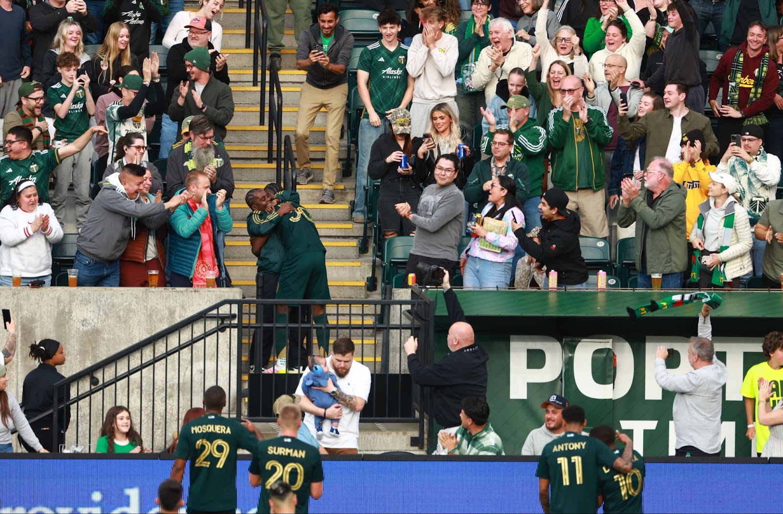 There are two notable embraces occurring here. Moreno hugging his mom is obviously the focus, but Antony has his right arm around Da Costa in the bottom right. It has almost been two years since the Brazilian arrived in Portland while only speaking Portuguese. Evander and Nathan Fogaca helped him settle, and a fully comfortable Antony is tied for the 3rd-most goal contributions in the entire league. He’s helped Da Costa settle in Portland, and both Portuguese speakers have some of the best chemistry on the team. Look at Juan Mosquera, who is probably shouting encouragement to one of the players that helped him settle in this foreign land. This team is still fueled by the power of friendship, above all else. But it was one players’ love for his mother that created the magic moment to give them all three points. Year 50 rolls on, with a bicycle kick chapter now added to a growing book. They bounced back, and now it’s time to embark on a difficult week with a trip to Salt Lake City and their only home clash with their biggest rivals on the horizon. The climb continues.