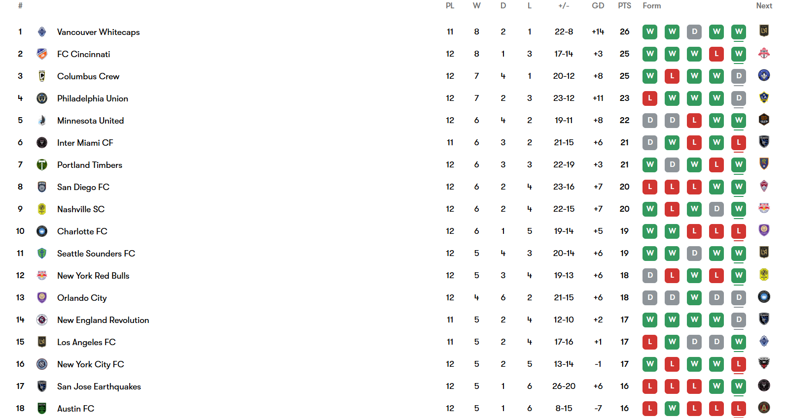 Yes they did! Now they’re in 7th and tied on points with Inter Miami. If Vancouver wins tomorrow, their gap to 1st place increases to 8 points. However, they’re only four points behind 2nd-placed Cincinnati. Fun!