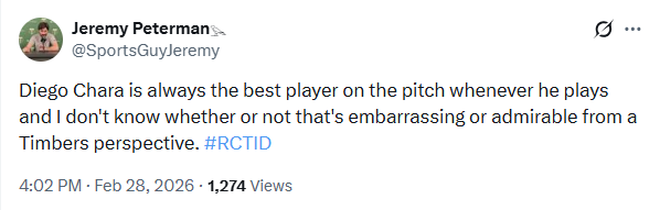 This was the worst game from Velde that I’ve seen him play in a Timbers shirt. The only other contender is last year’s awful loss in Seattle where he was clamped by Nouhou for a vast majority of the game. He suffered from BFTS worse than anyone else on the team. Fory and Bassett were often offering support on the left, but Velde continually made incorrect decisions or tried to play hero ball. A bounceback game is definitely needed after two matches without a goal involvement to open 2026.