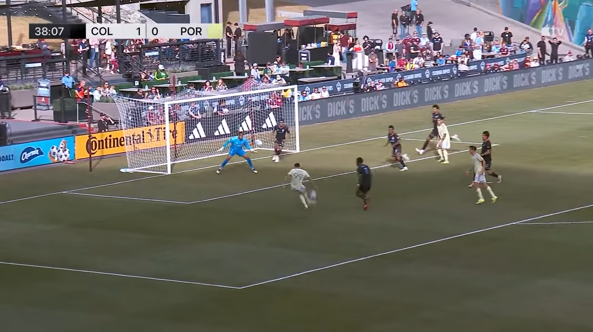 Portland’s next chance came from a set piece, just like the first. Velde’s 21st-minute delivery went directly through the six-yard-box before finding the surprised head of Felipe Mora, who was able to direct the ball on target. Steffen got to the ball in front of Finn Surman, who was sitting on the goal line. The Timbers were forced to recycle. Eventually, Brandon Bye’s deflected shot ended up in Steffen’s arms. With Portland’s attacks held at bay, the Rapids capitalized on a midfield giveaway. In the 23rd minute, Alex Bonetig rifled a pass at Diego Chara, who lost control of the ball. Colorado gained possession, and Navarro was through on goal again. His strong effort from outside the box forced Pantemis to make another save. Reggie Cannon continued the Rapids’ shooting parade with another effort from distance two minutes later that ended with the same result. But Portland wasn’t going to end the half without trying to create something big of their own.