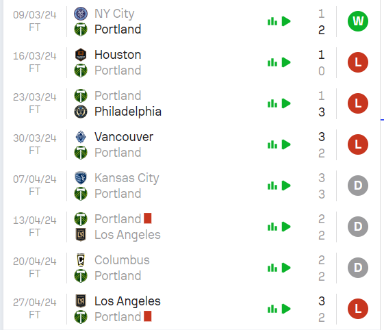 After tonight’s 3-2 loss to LAFC at BMO Stadium, the Portland Timbers have become the first MLS team to score at least 2 goals in 5 straight games without winning any of them.