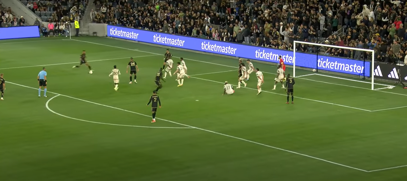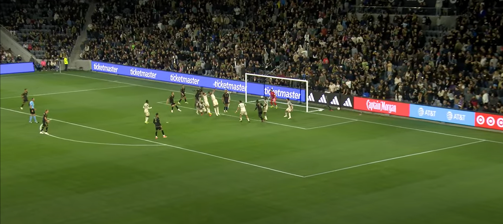 Based on this picture, taken from the corner kick that turned into LAFC’s winner, I can assume that zonal marking is the intent of the coaching staff. Kamara’s imposing figure is about to meet this cross head on.