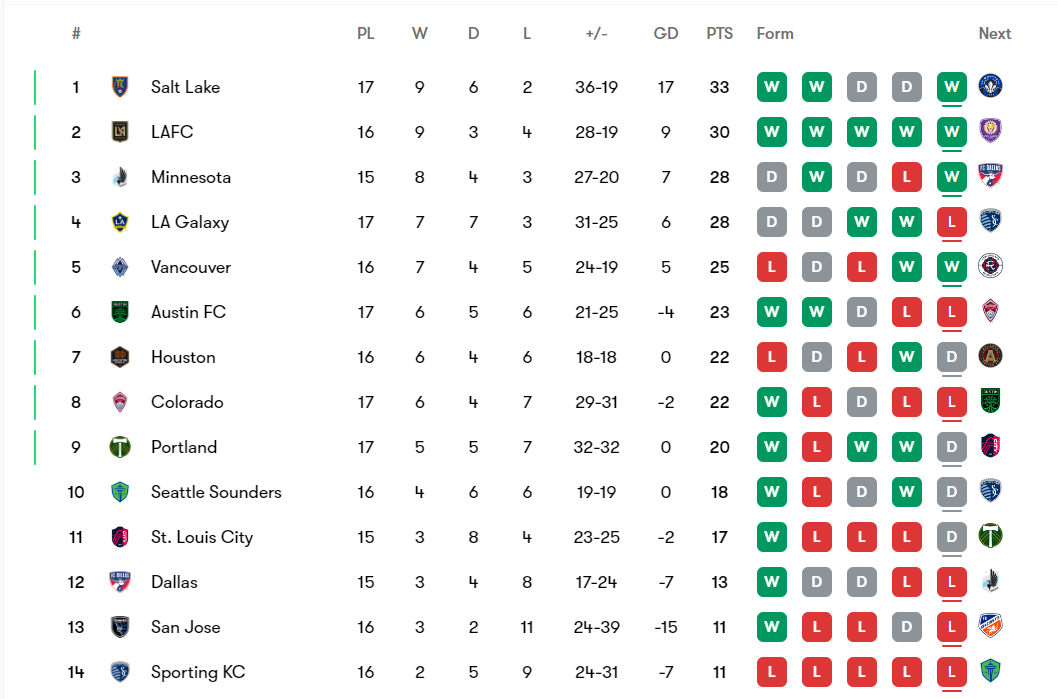 This team’s Achilles’ heel is the defense. Over the past couple of weeks, the structure has been improved. That’s really all that the coaching staff can do. Put the players in a place to succeed and then let the players do their thing. More individual mistakes doomed the Timbers tonight. A winnable game turned into a draw. So where does that leave them in the table?