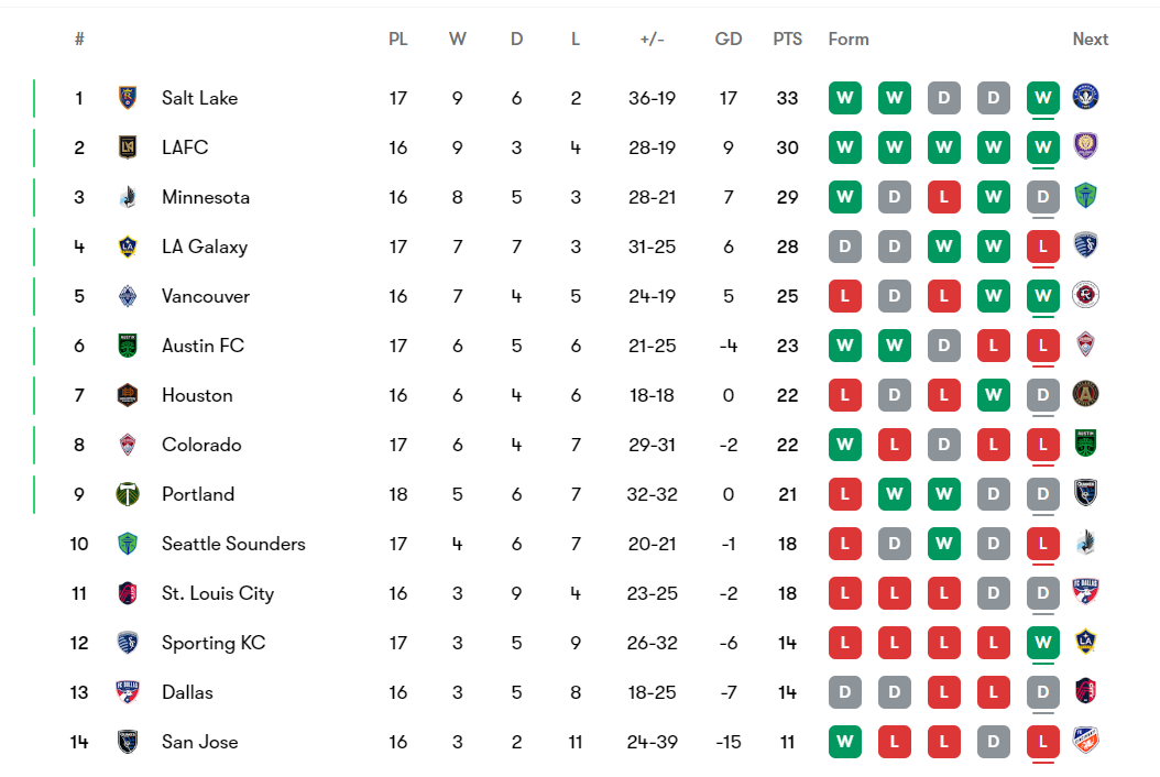 For the third consecutive game, the Portland Timbers end the night in 9th place. Teams below them have games in hand, and so do teams above them. There are 11 days between tonight and the next game, and there’s a full slate of games next Saturday. By the time the Timbers kick off in San Jose, they could be below the playoff line again. However, on the other side of the coin, they are one of three Western Conference teams that are on a 4-game unbeaten streak. The 11-day break will provide a much-needed rest for the only team in the West to play 18 games. Neville said that the players will have a week off, so hopefully they can clear their minds, get some rest, and be back next week ready to keep the momentum high. Another clean sheet can definitely add to the upward momentum of the past few weeks. Now the Timbers have to figure out what they will do this summer in order to improve on a perfectly average start to the season. 18 games played, 32 goals scored, 32 goals allowed, a goal differential of 0, and a 5-6-7 record. The climb continues.