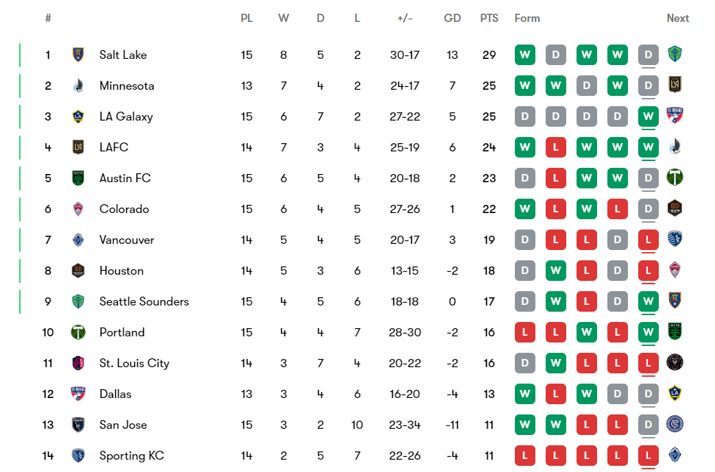 Portland’s schedule is finally softening up, and the Timbers (4-4-7, 16 points, 10W/19S) are beginning to take advantage of it. I calculated the average PPG of Portland’s opponents so far in 2024, and that number is 1.35. Out of their 15 matches played so far, they have been on the road for 8 of them. Tomorrow’s match is their 9th. But the Timbers have won 2 of their last 3 games, and now the Leagues Cup Runway has begun. There are only 10 more MLS matches until the regular season pauses and Leagues Cup begins. Half are at home and half are on the road, so the Timbers will enter Leagues Cup having played one more road match. The good news? All of those opponents are Western Conference foes (minus Nashville). The bad news? All of those opponents are Western Conference foes (minus Nashville). The concerning news? Copa America begins on June 20th. Maxime Crepeau, Kamal Miller, Miguel Araujo, and possibly Felipe Mora will miss at least 3 games. All of them will be back for Leagues Cup, but this is the most crucial part of the season. Not only do the Timbers need to build on the momentum from the past 3 games, but they need to win games of soccer.