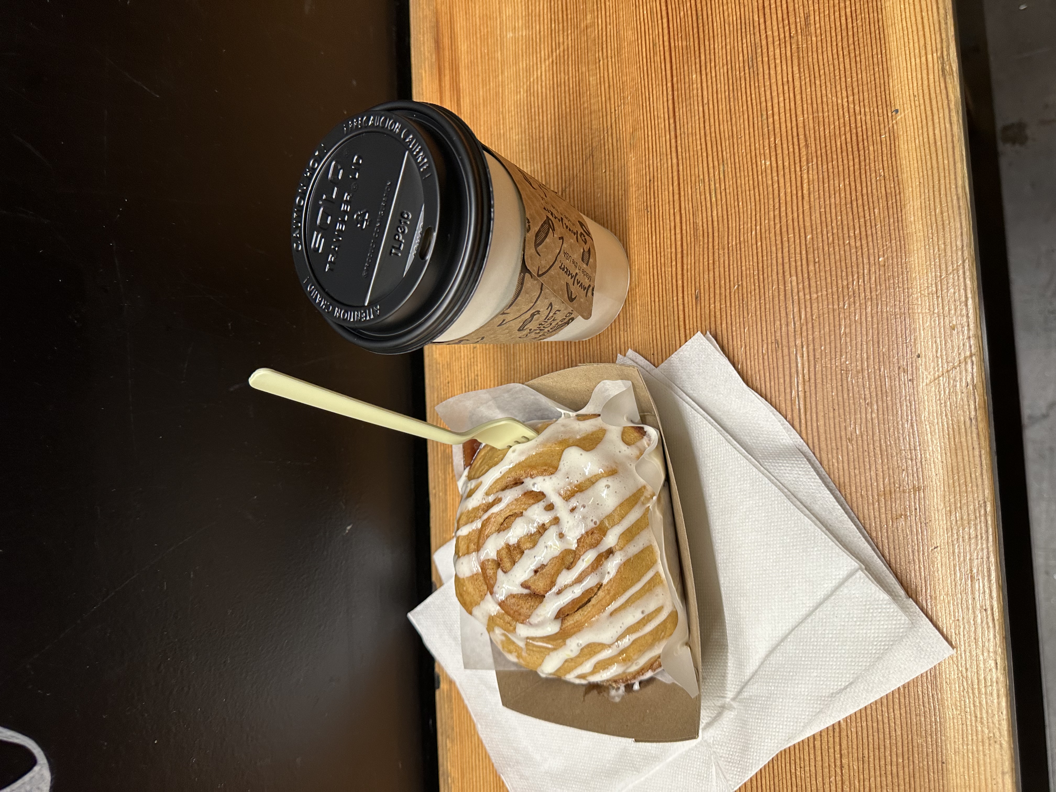 The coffee was not that great. It tasted like something I could make at home. They had the standard flavors: vanilla, caramel, salted caramel, mocha, and hazelnut. They also only had one alternative milk and whole milk. I think they will improve as they start incorporating signature flavors and adding other milks. However, despite having only okay coffee, they had incredible pastries. They had a wide assortment of in-house-made pastries and other little treats. I had a cinnamon roll, which was easily one of the best cinnamon rolls I’ve ever had. It had incredible flavor and was caramelized at the bottom to give it an added texture that made it much better.