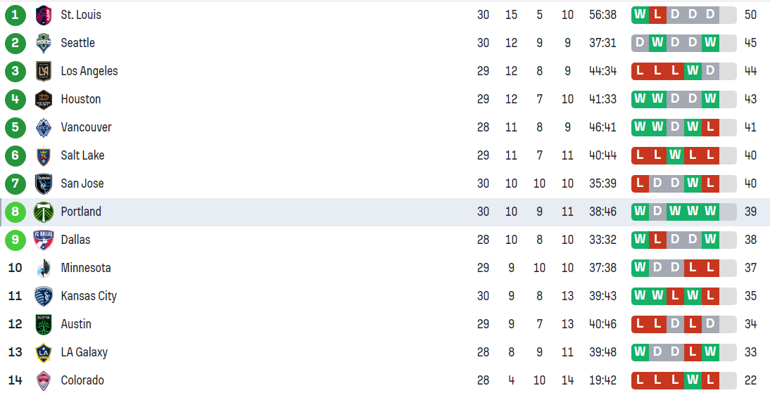 Rather than looking at the positions first, let’s glance over to the form column. Only three teams have gone unbeaten in their past five. The first is Seattle, who are somehow in second despite being very beatable in 2023. They also have three draws among those 5 games, and the wins are against Austin (winless in their last 6) and the Colorado Rapids (just bad and a team they should be beating). Not that impressive from the silly little Fishies. (On a related note, they are unveiling a new crest next week. I am begging for something orca-related so I can laugh at it.) Houston is actually a problem. Across all competitions, they are unbeaten in their last seven. They are playing really good soccer and are in the Open Cup Final. They are, without a doubt, the hottest team in the West. There is a world where they finish top of the West. Given how shaky the top three teams look, it’s a very likely possibility. Vancouver just misses out on the unbeaten club because they got destroyed in Houston tonight. That leaves the PORTLAND TIMBERS as the last team with a 5-match unbeaten streak in the West. Unlike the two other teams, they’ve won their last three. To add to this impressive turn of form, they’ve won the last two without Diego Chara. The Timbers are now 8th in the West, but it’s still a shaky seat to sit on. Dallas is right behind them, only one point back with two games in hand. Minnesota is two points back with one game in hand. The Loons carried a 3-1 lead into halftime in Carson, but allowed 3 goals in the second half to walk out of Dignity Health Sports Park with no points and no dignity. Thank you, Billy Sharp. SKC lost at home to Nashville and are now 4 points back and tied on games played. A tough break for them, but one that favors us. So how high can the Timbers climb on Saturday if they beat Colorado? RSL and Vancouver play each other, while San Jose hosts Nashville. They could climb up to 5th if RSL-Vancouver is a draw and San Jose loses. Still not safe, but definitely more comfortable than 8th. Pretty promising stuff, especially with a Colorado team destined for the Wooden Spoon on deck.
