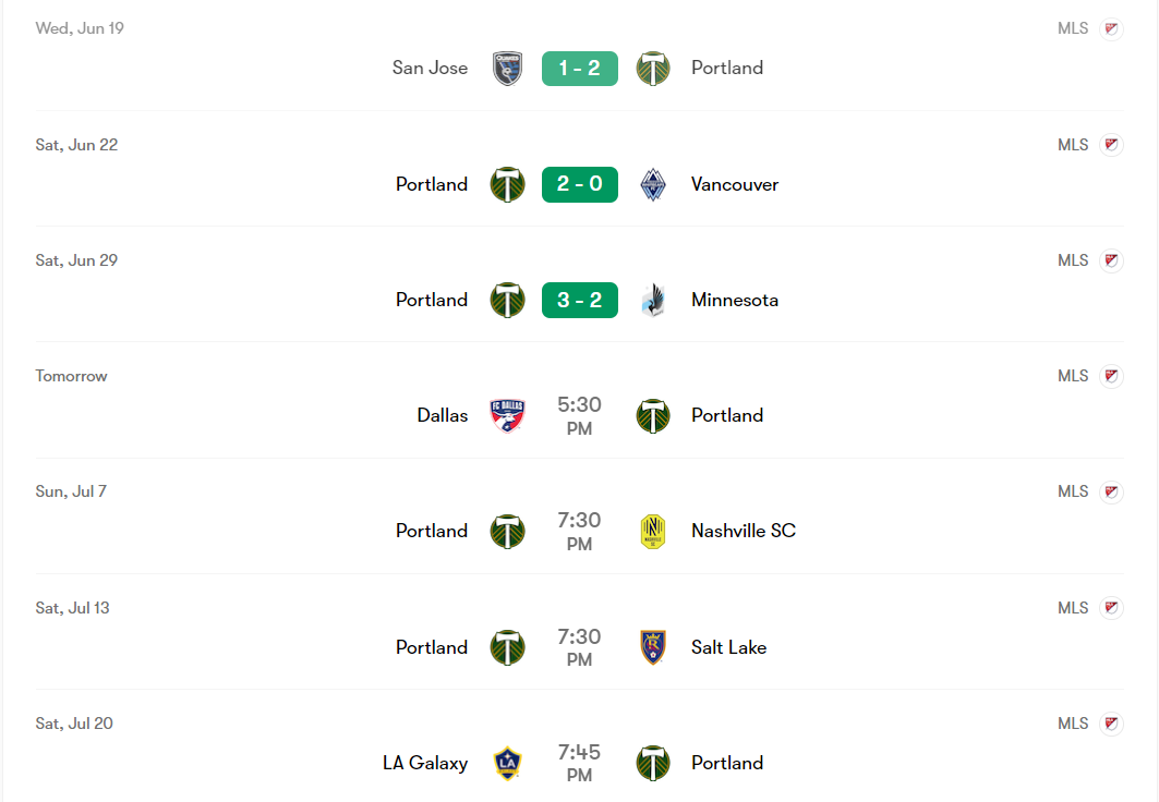 But before I can talk about the not-hot opponent the Timbers are facing tomorrow, there is another pressing issue at hand. This is Year 2 of the Apple deal, and for the second year in a row the Timbers are being forced to play on the 4th of July. Last season, the worst match of the season was the 0-0 draw in Colorado on July 4th, which ended up being postponed at halftime due to thunderstorms. The two teams resumed the match on July 12th, and the scoreline remained the same. It was easily the most forgettable match of 2023, and it was a true Sickos classic. Independence Day falls on a Thursday this year, and MLS scheduled 3 games. Last season, there were 5 games. Apple didn’t make any changes to their arcane kickoff time rules, so all 3 matches (Dallas-Portland, Colorado-SKC, and El Trafico) will kick off at 7:30 PM local time. If MLS really wants to claim the 4th of July as a soccer holiday (which is very unpatriotic because the 4th of July is for baseball and always will be) they really should stagger more games throughout the day. I’m pretty fine with the new El Trafico at the Rose Bowl tradition, and I understand that the Colorado Rapids have a fireworks display scheduled for the 4th, but MLS is definitely half-assing their 4th of July schedule. It’s a perfect day to actually stagger the games, and they didn’t.