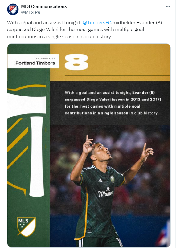 Evander strengthened his MVP case (unless you don’t believe he is a MVP candidate, which makes you a hater) with another goal and assist. He now has 11g/10a on the season. And he broke another Timbers record as well.
