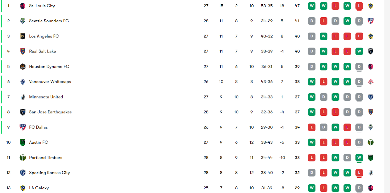 *I’m not including the Colorado Rapids because they are 10 points behind the Galaxy and are pretty much dead.*