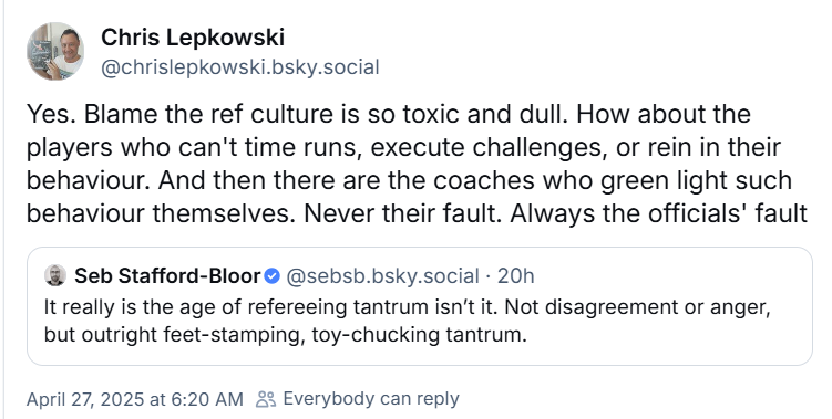 After several weeks of referee criticism, it’s time for the tide to turn. Today’s game was officiated how a soccer game should be.