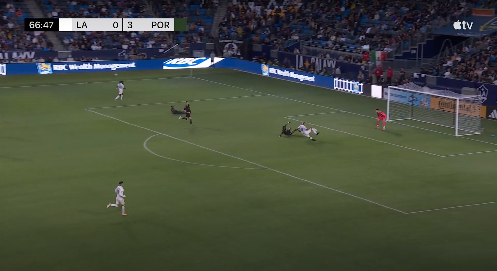 One last frame for analysis. Reus actually takes a bad touch and has to reach behind him in order to get the shot off. Pantemis is caught off-guard, and probably should’ve saved this. Either way, this is a very 2024-esque goal for the Timbers to concede. It’s also a very 2024-esque goal for the Galaxy to score. During these two minutes, both teams reminded their fans what last season looked like. For the Timbers, it was mental mistakes at the back. And for the Galaxy, it was a brilliant attack that punished those mistakes in severe fashion. However, tonight’s final score made a statement for both teams: it isn’t 2024 anymore.