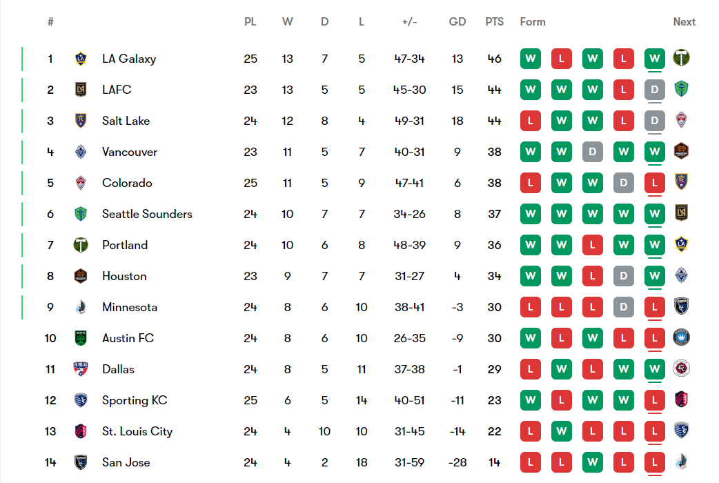 This is a massive weekend for the Western Conference playoff picture. All of the top 8 teams play each other and points will be dropped. If results go the Timbers way and they take care of business in Carson, they could find themselves in 4th as they enter Leagues Cup. But based on Neville’s Thursday comments, what the other teams do isn’t as important as what the Timbers do. There is a gap forming between the top 8 and the rest of the conference. The Timbers need to do their job and extend that gap, no matter where they land on the table once the action comes to a close on Saturday night.
