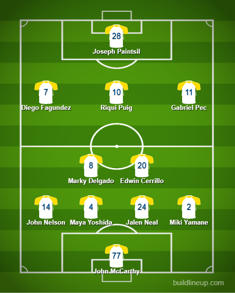 Given the severity of this game, the Galaxy cannot afford to rotate. The only change I foresee is Nelson starting at left back while Yamane moves back over to his natural role on the right. Both midfielders played 90 minutes on Wednesday. Pec and Puig did the same. Fagundez has been a key contributor for the Galaxy this season. Paintsil has been playing as a false 9 during Joveljic’s absence. Like the Timbers, the current backup striker (Miguel Berry) should be upgraded in the summer. This Galaxy team will be tired but motivated, and all of their attackers are capable of scoring.