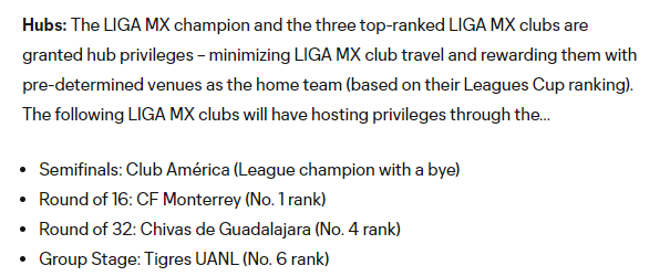 This rule would also apply to the Chosen Four. Monterrey and Chivas got eliminated in the group stage this year, but they would have to sacrifice their hub privilege in the Round of 32 if they advanced in second place. Other Liga MX teams that win their group should be able to “host” a Round of 32 game to erase the advantage that MLS teams get if they finish second but face a Liga MX team in the next round. This part of the plan is more convoluted, and probably wouldn’t help with attendance. But I’ve seen a lot of empty seats during Leagues Cup games this year (I’m currently watching Vancouver play Pumas in their Round of 32 game and there’s plenty of empty seats at BC Place; wait, strike that, it looks like a normal Whitecaps home game).