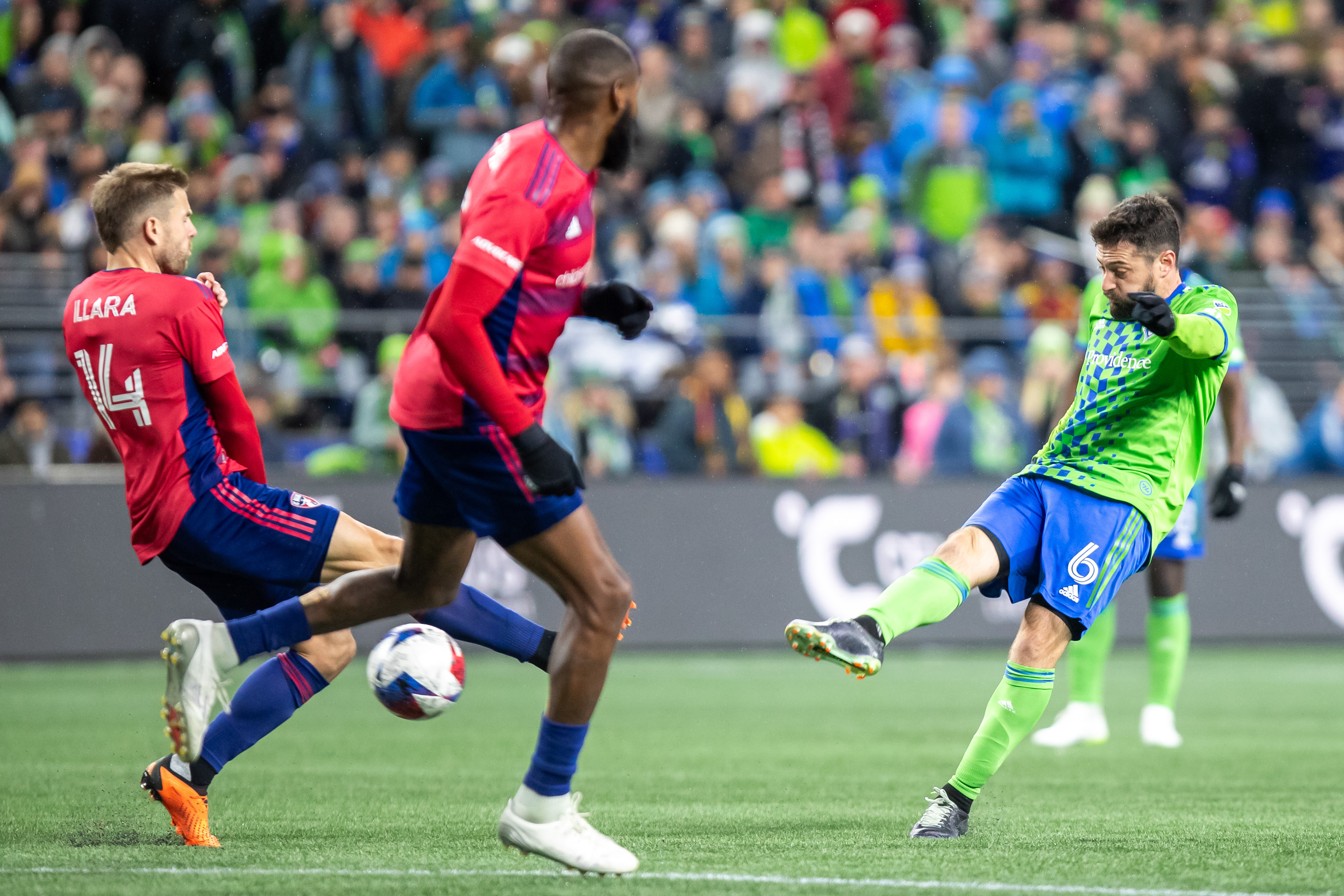 The cadence of the game didn’t shift a whole lot, with the Sounders starting off on the front foot and remaining so for the whole game. The Sounders defense and midfield broke Dallas apart whenever they mounted an attack. In the 12th, for example, Dallas’ offense danced around the box, but the back line held firm and prevented any chances.