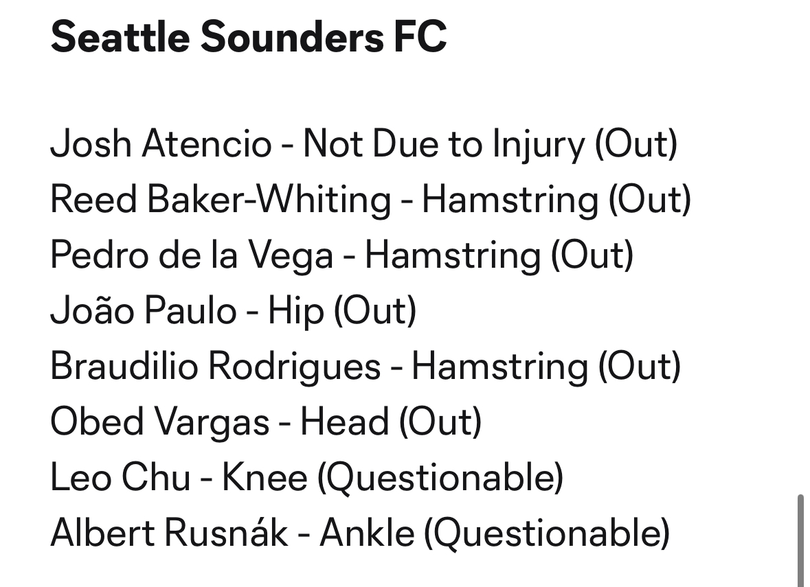 On Friday afternoon, we learned that Leo Chu and Obed Vargas got injured in training that morning and wouldn’t be available for the San Jose match. Those two just added to the ever-growing list of injured players for the Sounders.