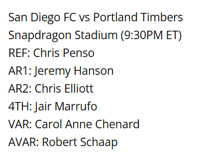 Last Timbers game officiated: September 27, 2025 vs. FCD 2-2 D