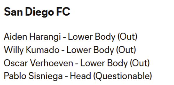 SDFC Injury Report & Projected Starting XI