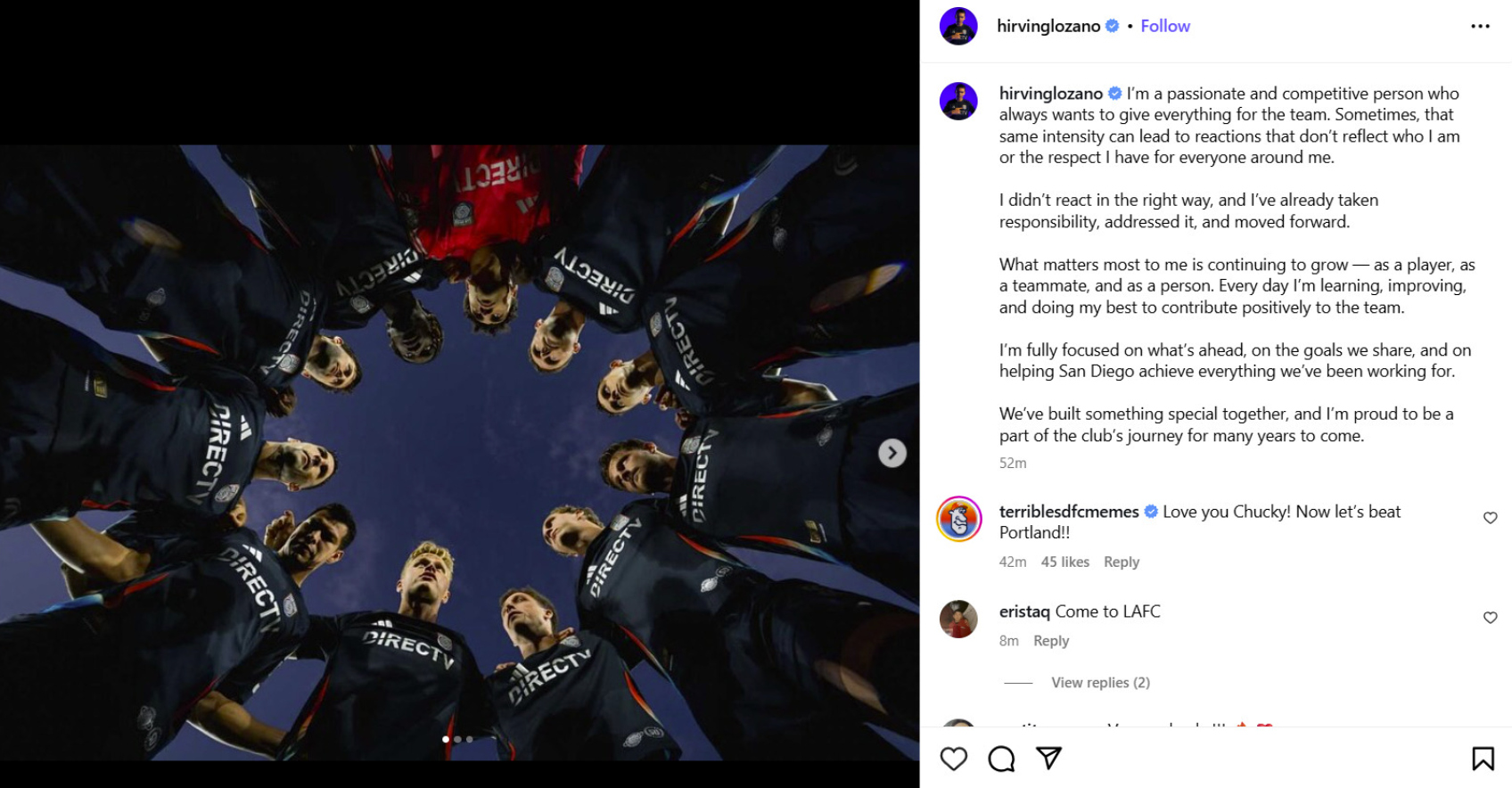 Per Tom Bogert of The Athletic, Lozano’s “situation” began at halftime during San Diego’s game against Houston on October 4th. The Mexican winger was subbed off at halftime, and reportedly got into a verbal altercation with unnamed team personnel. However, Lozano posted an update on Instagram on Thursday to calm the flames.