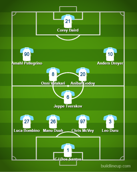 When you beat a team 4-0 and immediately turn around to face them one week later, it’s a safe probability that you’ll stick with the same lineup that delivered a resounding victory. The only change is Duru, who will probably slot in at right back due to the sudden lack of depth in that area. However, Varas could opt to put Bombino at right back (like he did in the first meeting between these teams) and Franco Negri at left back. That’s the only change that I’m predicting, especially as Lozano works to earn back his teammates’ trust.