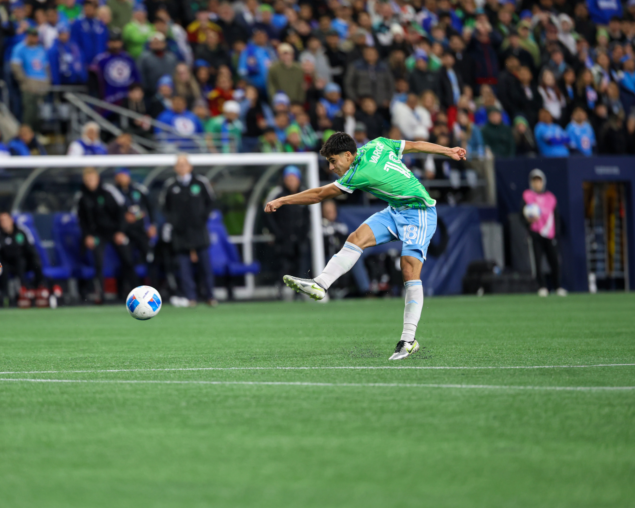 It’s an unusually divided stadium on a cold, clear Wednesday night in Seattle. Loud and proud for the Sounders is ECS at Lumen Field’s Brougham End – and almost as loud, but just as proud, are scores of Cruz Azul diehards. Of the 27,844 fans in the stadium, most are going for the Rave Green – but it’s a close margin.