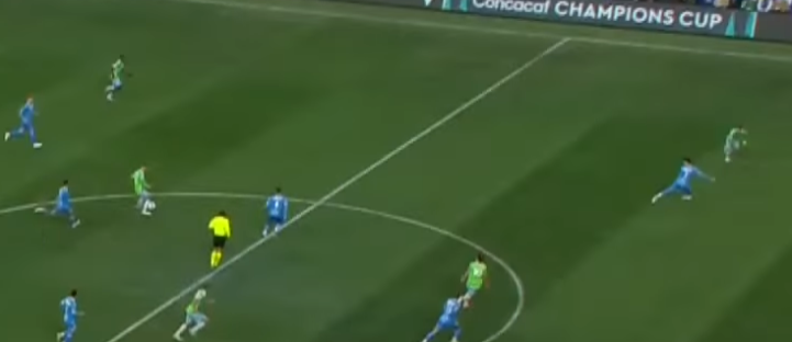 In the 48th, the team had their first chance off a Rusnák corner kick. Cruz Azul captain Lorenzo Faravelli easily deflected the initial cross, but the ball went to Cristian, who sent in a beautiful ball to Nouhou on the right side. Nouhou headed the ball – off the top of the crossbar. Still tied.