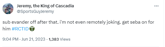 Tonight, there were plenty of complaints about Evander. I thought he looked off the pace from the start of the match, but his quality alone gives us a leg up. I am once again here to remind you that Evander is not Diego Valeri. His quality comes from his unbelievable passing ability and his vision. He is so good at reading the game and can bring in players at any position on the field. But for the second match in a row, he tried to play hero ball and failed. We all know that he’s better than that. Right he blew that chance in the 69th, I tweeted this out.
