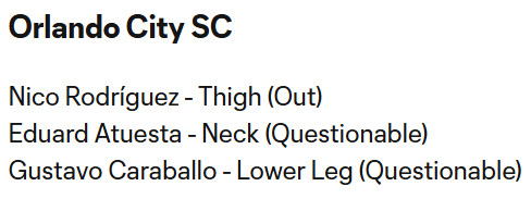 Atuesta hasn’t played since April 26th, so his “questionable” tag is a victory for Orlando. It is also worth noting that the Lions have a midweek trip to Atlanta following tomorrow’s game.