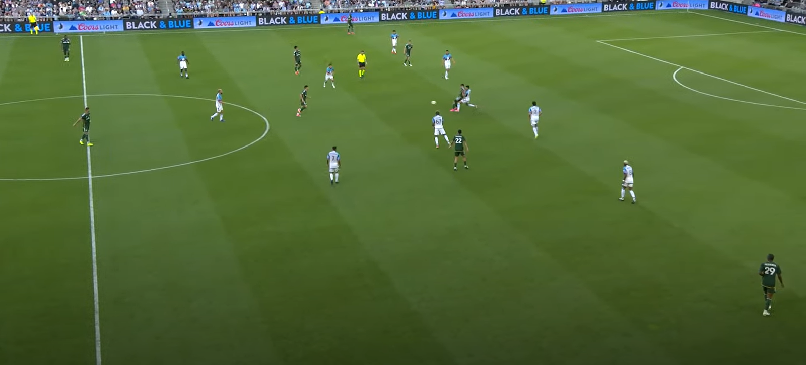 Phil Neville trotted out a back three again, but Miguel Araujo returned to the starting lineup. Jonathan Rodriguez and Felipe Mora started up top, while Dairon Asprilla and Juan Mosquera were the wingbacks. The biggest changes were in the midfield. David Ayala and Cristhian Paredes entered the starting lineup, and Diego Chara began today’s game on the bench to get some rest. Minnesota began this game on the front foot and pressured the Timbers relentlessly. But Portland found the breakthrough after Ayala picked a beautiful through ball for Rodriguez, who slotted it past Dayne St. Clair 17 minutes in. For the remainder of the half, Portland did an excellent job of forcing the Loons to attack from wide areas. This resulted in a lot of low-quality chances, and Maxime Crepeau did an excellent job of erasing the most promising ones. However, things began to pick up in the 42nd minute. Rodriguez and Minnesota right back Caden Clark shared a few words, then some of Clark’s teammates came over. The game was already very physical, so this confrontation was almost inevitable. Yellow cards were shown to Miguel Tapias and Rodriguez. More on that later. Two minutes later, Rodriguez had a clear breakaway against St. Clair, who was caught in no-mans land. The Uruguayan tried to chip the keeper, but St. Clair had an incredible headed clearance to take the ball out of Rodriguez’s path. A huge chance went begging, but the Timbers entered halftime with a 1-0 lead.