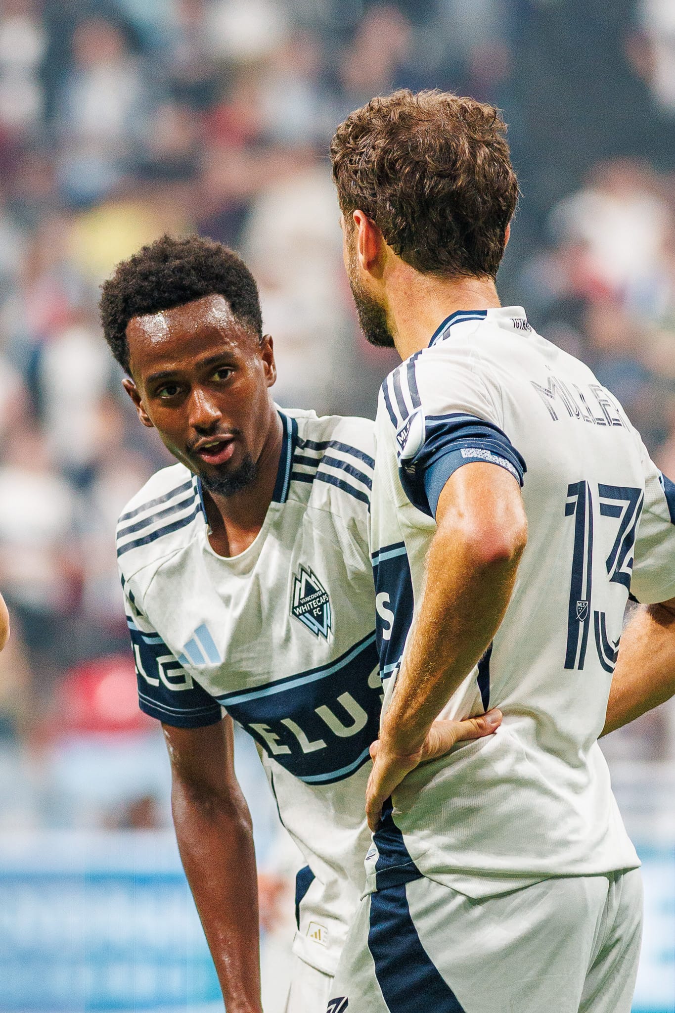First half ended with the Whitecaps up 3-1 after Nicolás Mezquida fed Thierno 'Elage' Bah for Vancouver FC's only goal of the half, but the Whitecaps would maintain a 2 goal lead with a PK from Müller and a responding goal from Ahmed; his second of the match. Image Credit: Alex Bowen / Cascadia FC