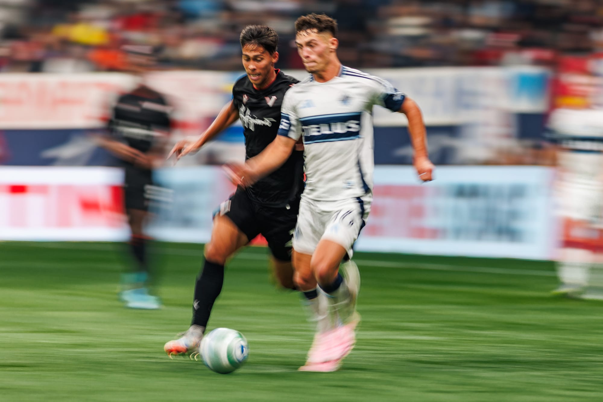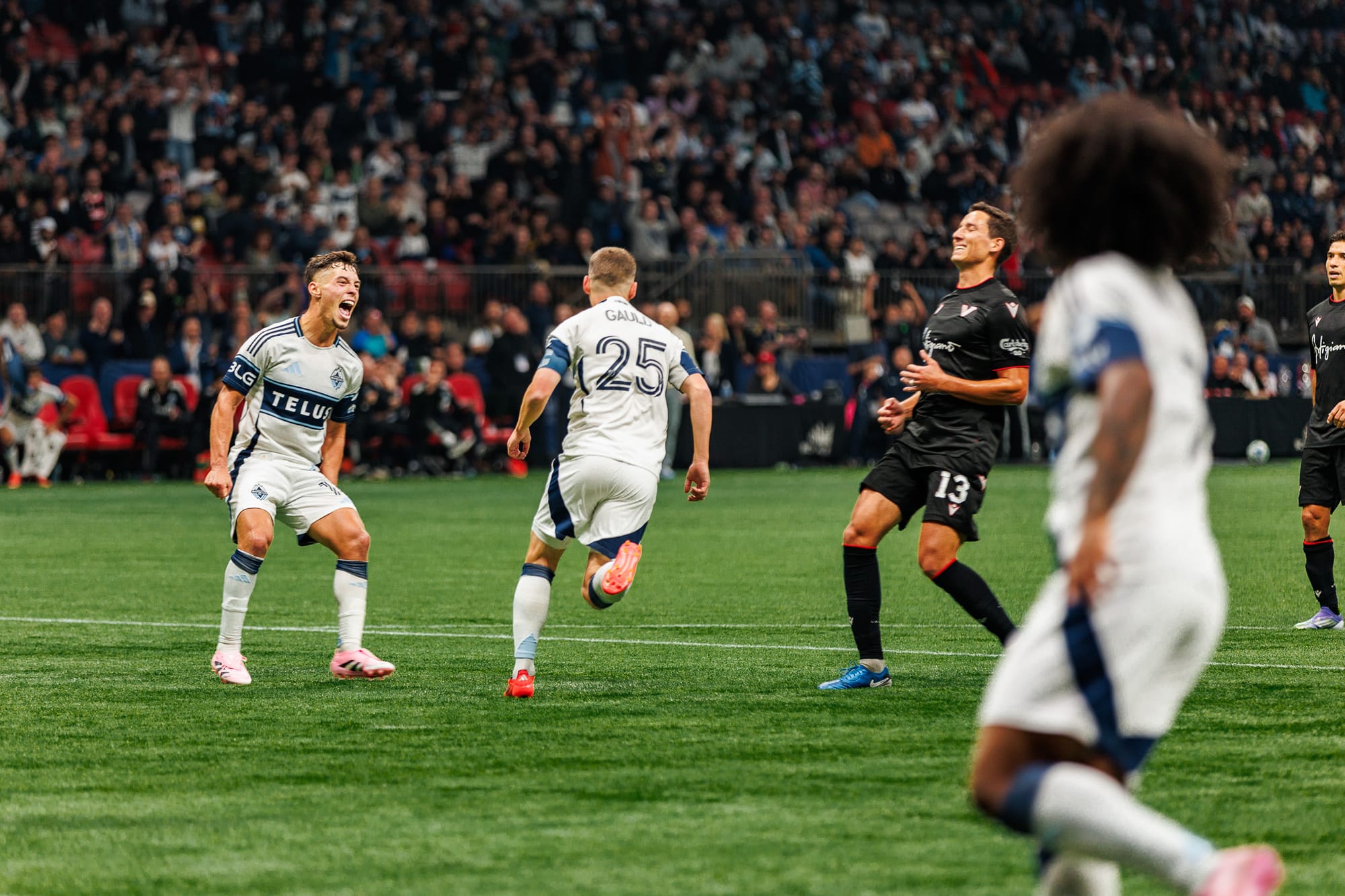 The Vancouver Whitecaps opened the scoring early, with Ali Ahmed opening the scoring in the 5th minute, off a sharp cross from Thomas Müller. Image Credit: Alex Bowen / Cascadia FC