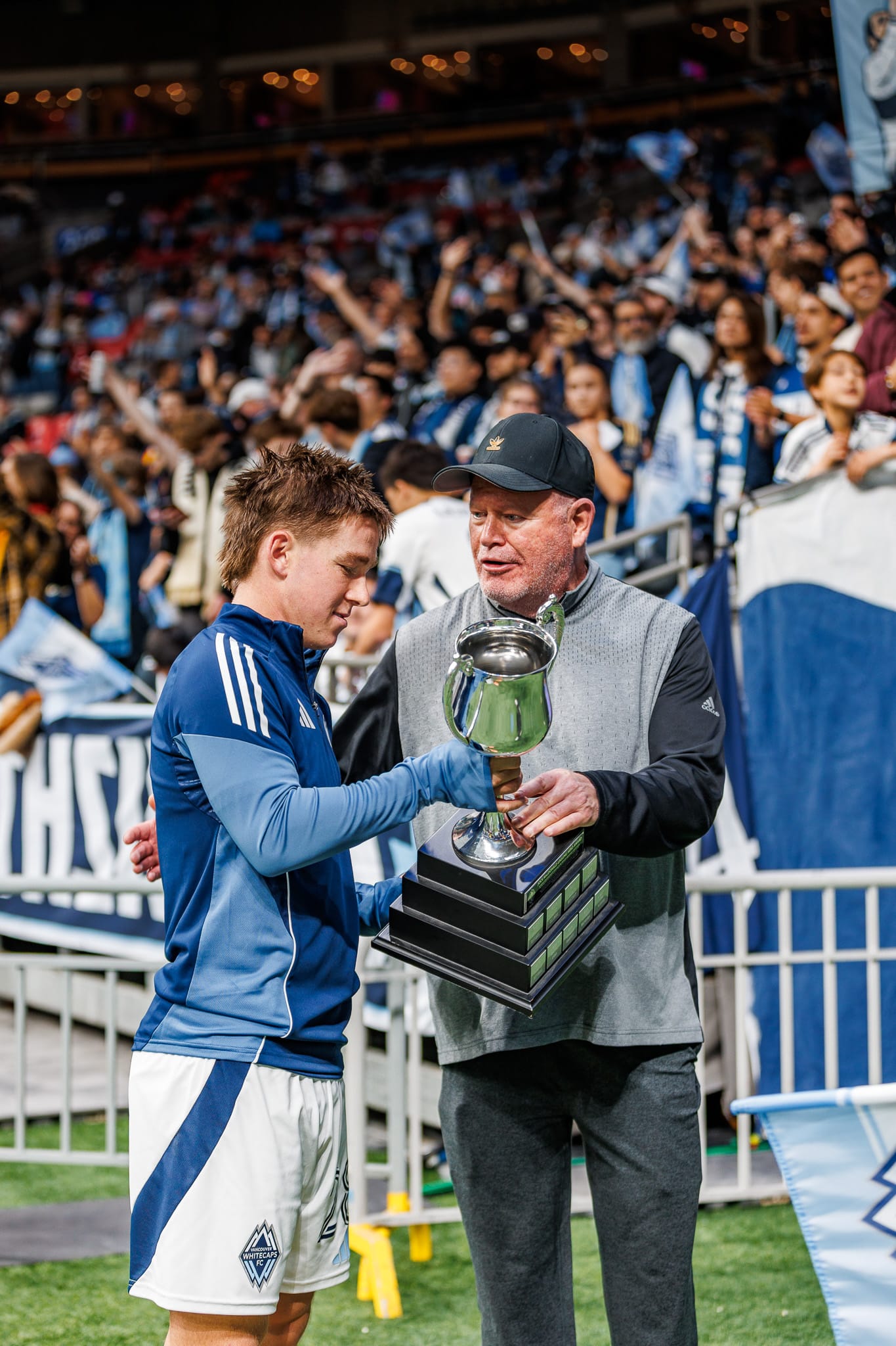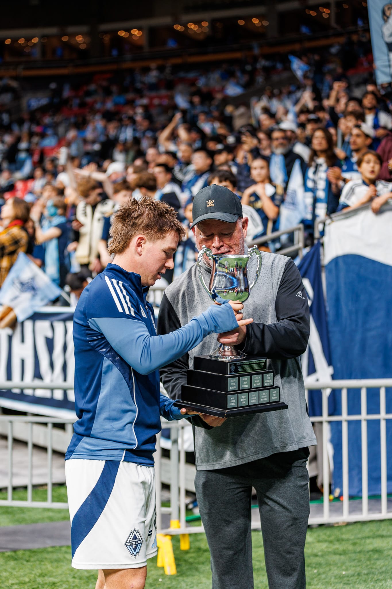 The Jock MacDonald Unsung Hero award winner: Tate Johnson. Image Credit: Alex Bowen / Cascadia FC