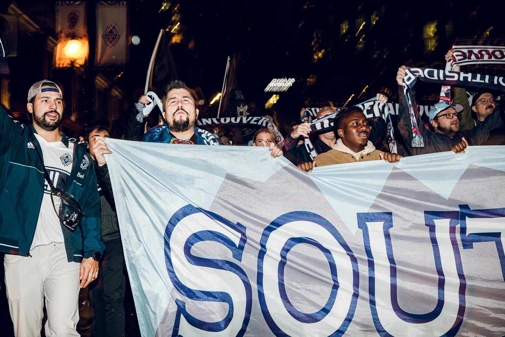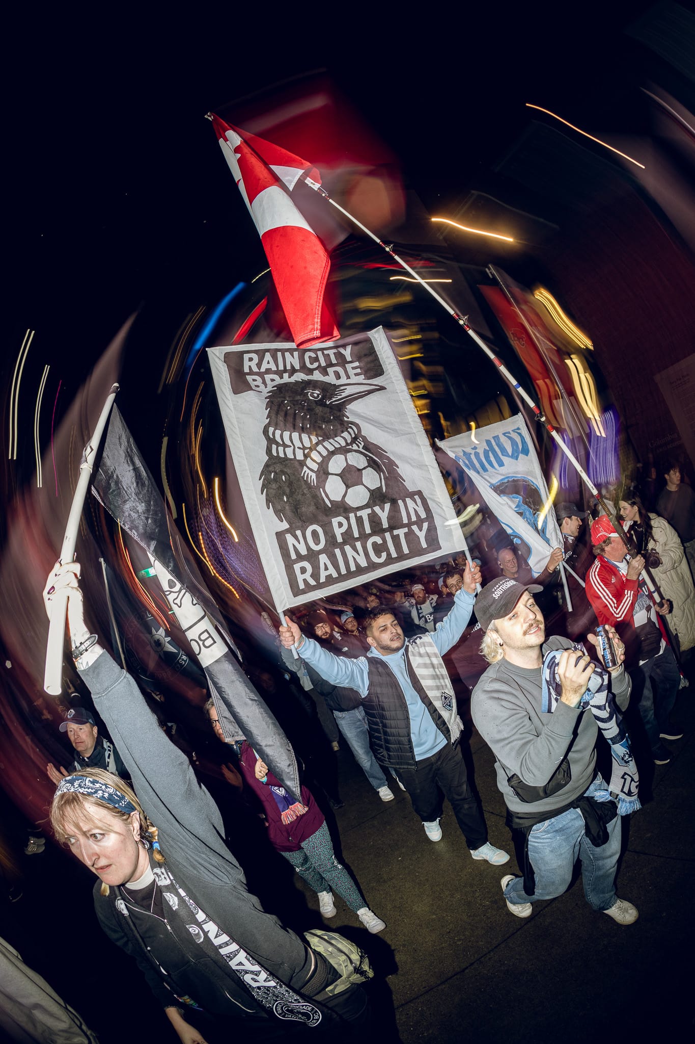 The Southside arrives with big energy. Image Credit: Alex Bowen / Cascadia FC