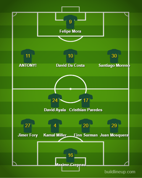 Two changes from the team that started in Orlando. Kamal Miller was rotated for that game and should be back in the starting lineup tomorrow. Felipe Mora is the team’s home striker, so Kevin Kelsy gets dropped to the bench and the opportunity to make an impact as a substitute. Although Chara is back, I think Paredes has earned another start alongside Ayala. We’re at the point in the season that the lineup picks itself, aside from an injured Rodriguez. This upcoming break will be crucial for the Uruguayan.