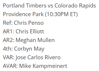 Last Timbers game officiated: March 25, 2023 vs. LAG 0-0 D