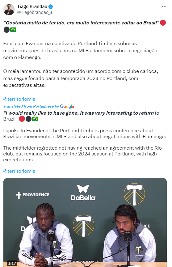 This is only one quote posted from an interview given in a language that most Timbers fans cannot understand. If you look at this one quote, it’s understandable that you would be upset with him. It’s a bad quote taken completely out of context. Here’s Evander’s full response to the question, translated into English: