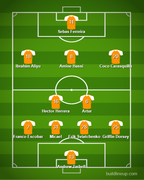 Ferreira is off the injury report, and I believe that he will start this game. The second line of Aliyu, Bassi, and Carasquilla is pretty settled, and the same thing goes for the double pivot and backline. Even if Clark is fully healthy, Tarbell had an excellent game against Colorado, and I think he starts for the 3rd match in a row. This is a strong Houston lineup, but the bench is rather weak. Plus they are traveling to Portland on short rest.