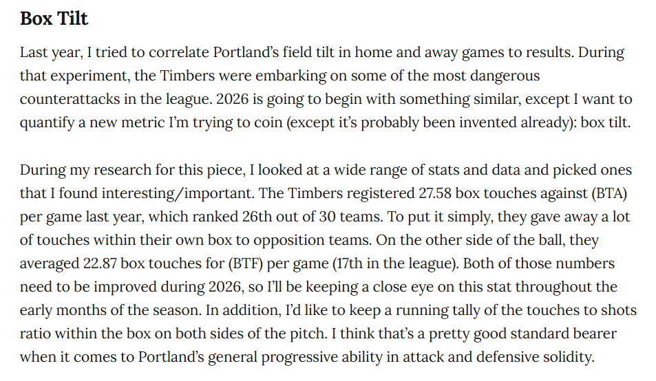 This is a serious problem for the Timbers, and it’s one of the reasons why I’ve been hammering box tilt throughout this season. Let’s look at a quick excerpt from my season preview and see how well it’s aged. I like to go back and take a look at some of my previously published articles from time to time. Just this week, I re-read the monster experiment I published about finding a replacement for David Ayala. I completely forgot that I put Jose Caicedo on the shortlist. Giving myself a hefty pat on the back for that one.