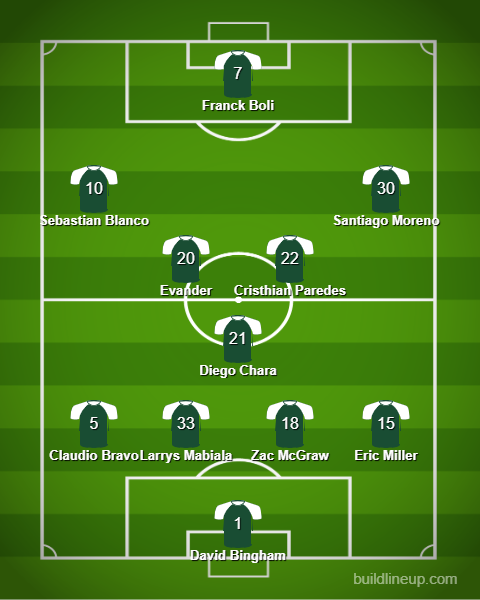 This doesn’t look especially depleted, but there is a healthy scratch for this lineup. Giorgio Chiellini doesn’t like turf, so I’m not expecting him to make an appearance. Bogusz fills in for Bouanga on the left, while Tillman takes Bogusz’s spot in the midfield. Diego Palacios should start, which allows Ryan Hollingshead to fill his natural role at right back. It’s a weakened LAFC team, but not a helpless one.