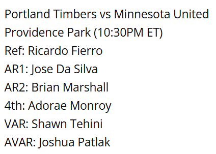 Last Timbers game officiated: May 11, 2025 vs. SKC 1-0 W