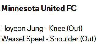 MNUFC Injury Report & Projected Starting XI