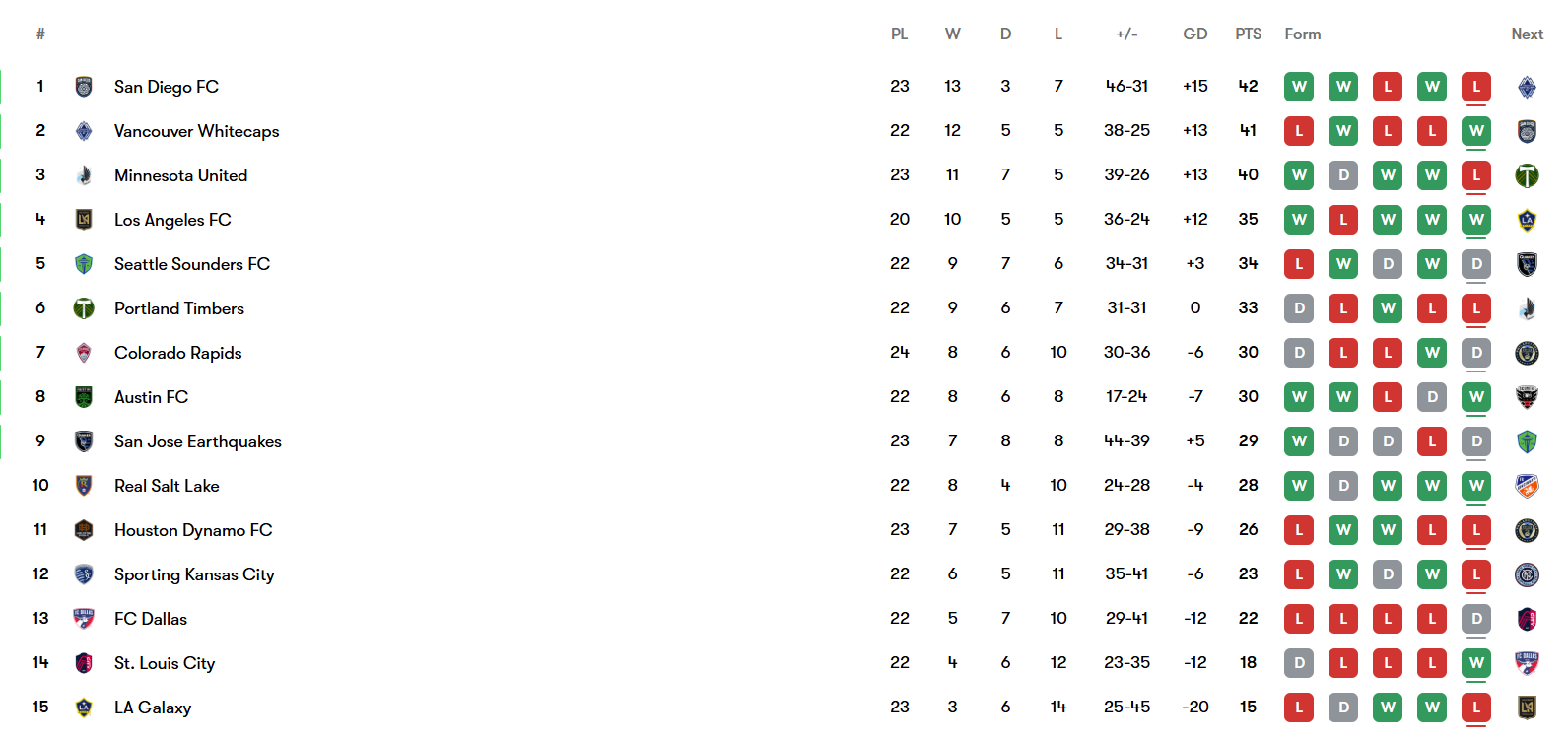 The West’s top two teams face each other tomorrow, while LAFC has a Trafico on their plate. Seattle hosts San Jose as well. I’m constantly repeating myself by saying “tomorrow is a huge opportunity” but this is the biggest one of the season so far. Reminder: the Timbers have not played San Diego yet and they haven’t traveled to LAFC, Seattle, Vancouver, and Minnesota either. The Loons, meanwhile, lost at home to LAFC on Wednesday. Although the Timbers are no doubt feeling some fatigue from such a compressed week, at least they didn’t have to travel.
