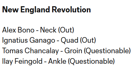 You could make the case that this is New England’s best XI aside from the (predicted) absences of Feingold and Chancalay. However, Ceballos and Fofana are both on yellow card warnings. My official prediction is Langoni starting in front of a questionable Chancalay, but former Timber Maxi Urruti could start over both. The cult hero striker scored a late equalizer to complete a 3-3 comeback against Colorado last weekend. One more note: the Revolution will be wearing their secondary kits tomorrow, which are green. It usually doesn’t end well for opposition teams wearing green at Providence Park.