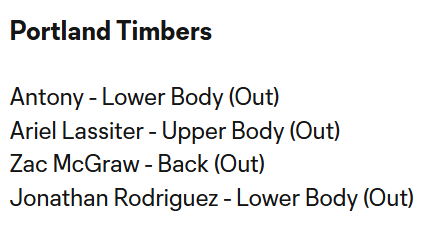 Omir Fernandez does not carry an injury designation, which is very good news. Jimer Fory is suspended for yellow card accumulation. Kamal Miller is on a yellow card warning.