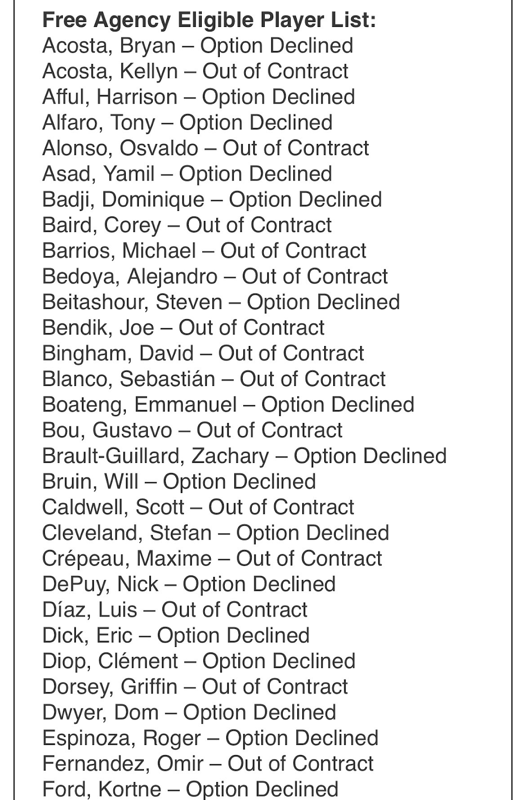 When I was sketching out my plan for this monster offseason checklist, I anticipated covering all potential additions in a single article. However, this is the best class of MLS free agents in league history, so we’re only going to be covering MLS free agents in this article. Before we get into that, there are two pieces of roster business I want to cover.