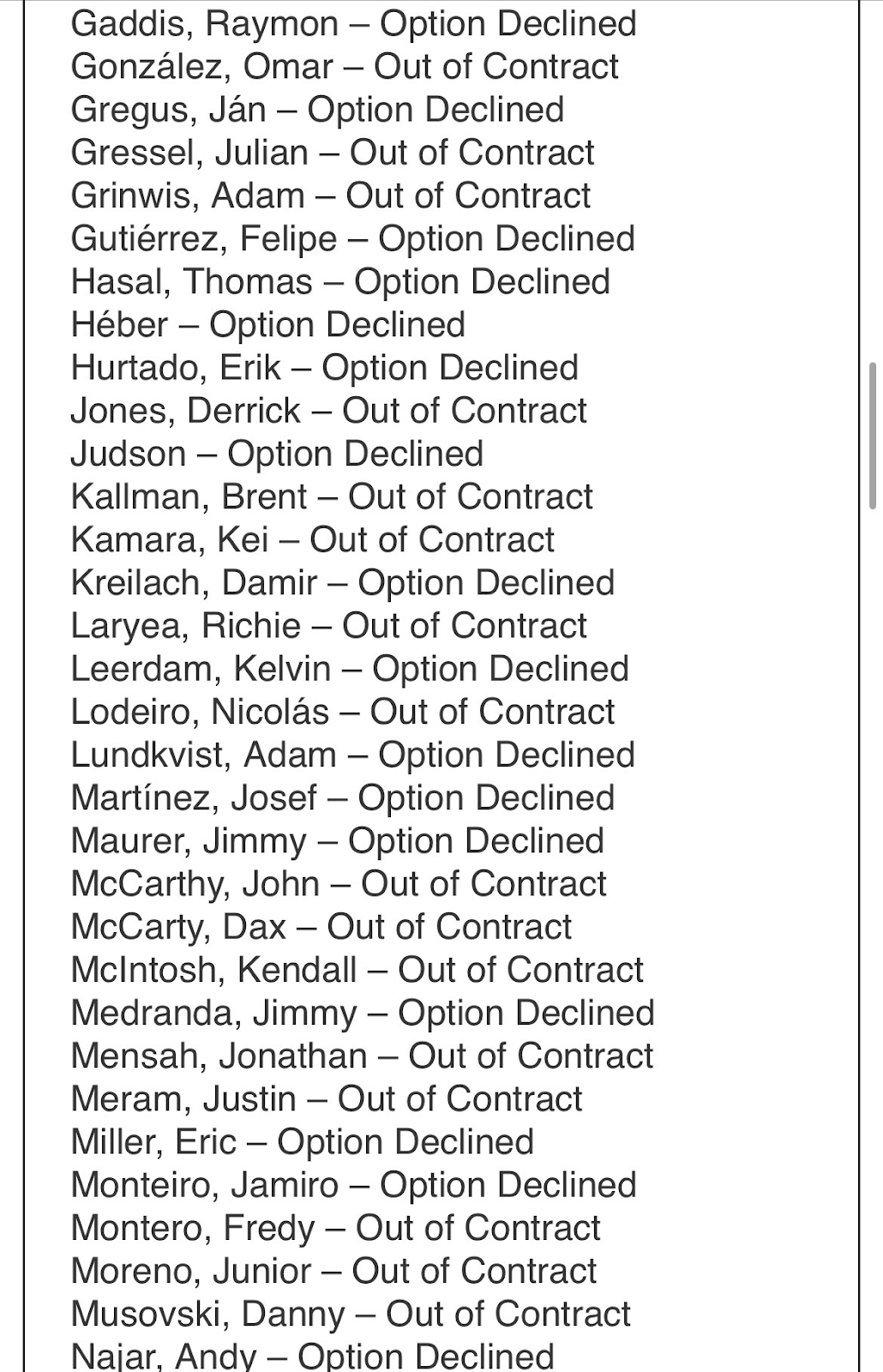 He’s probably going back to Houston, but he’s coming off a career year and will definitely test the market. Eric Miller did not have his option picked up, but I doubt Dorsey would be OK with a substitute role behind Juan Mosquera. Either way, a backup right back is still a need, so the Timbers should at least reach out and see what he wants.