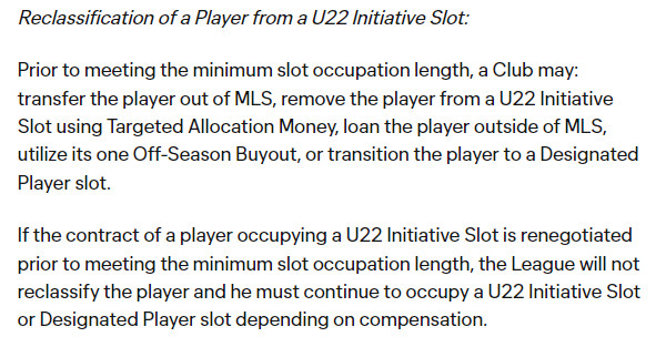 Santiago Moreno has been on the team for two seasons, which is the minimum slot occupation length. I also don’t believe that he’s happy with his contract. Those extension talks should continue in the offseason, and he might get his wish. Either way, a contract extension isn’t enough to remove him from the U22 tag. I don’t think the club is going to make him a Designated Player either, so I would imagine that they would use Targeted Allocation Money to remove him from the slot. That’s the most likely solution I can think of.
